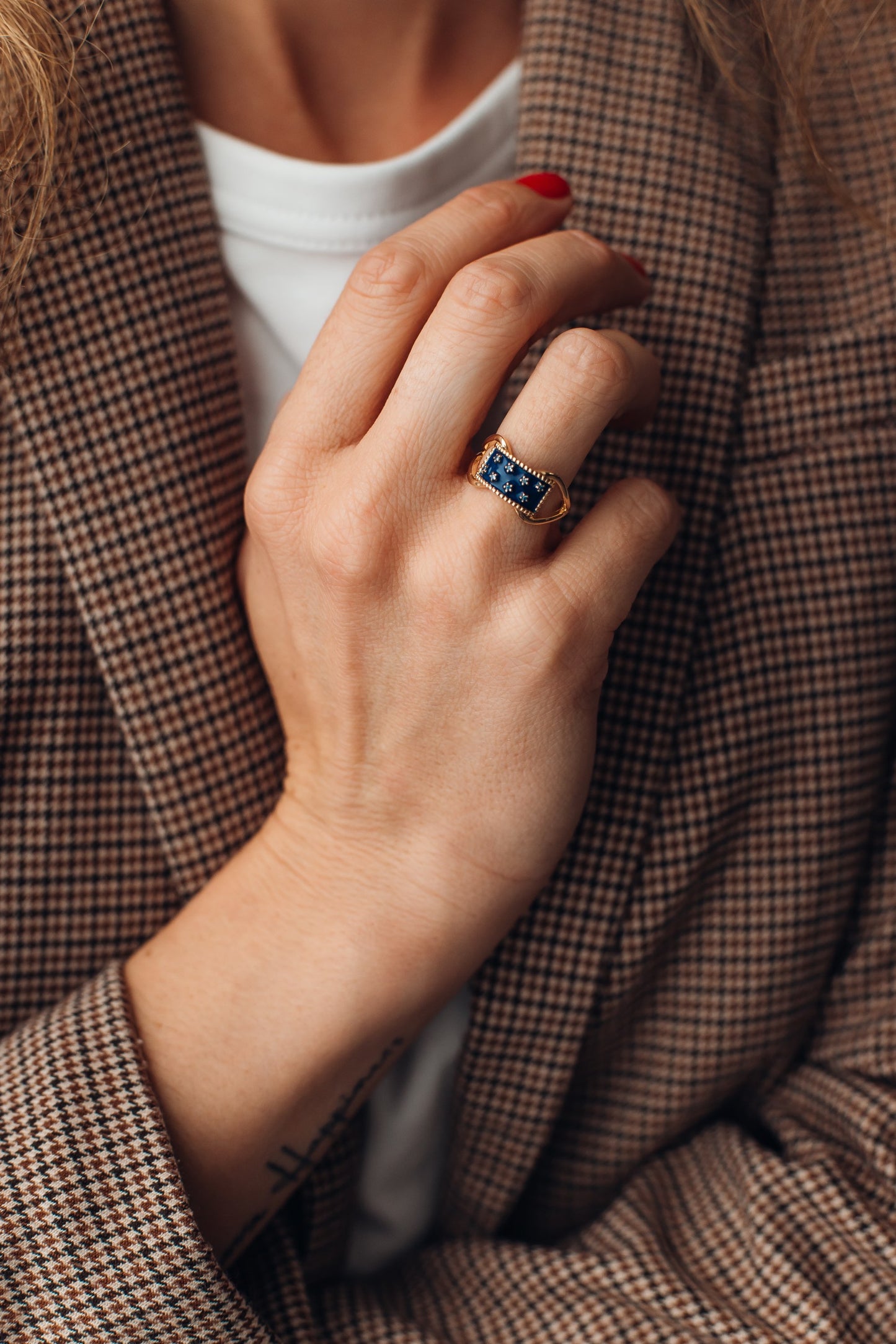 Bague ciel étoilé émaillée bleu nuit en plaqué or 18 carats