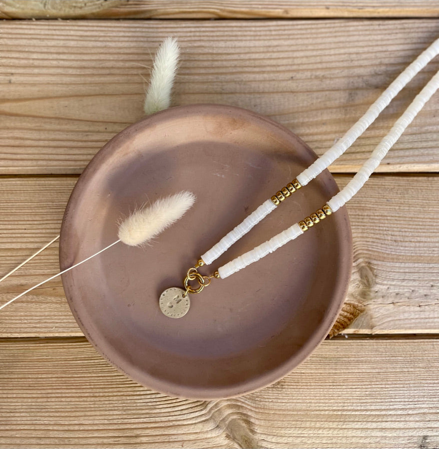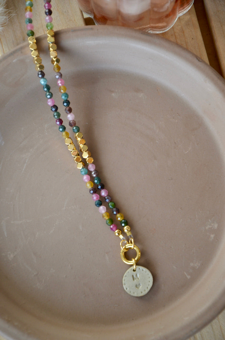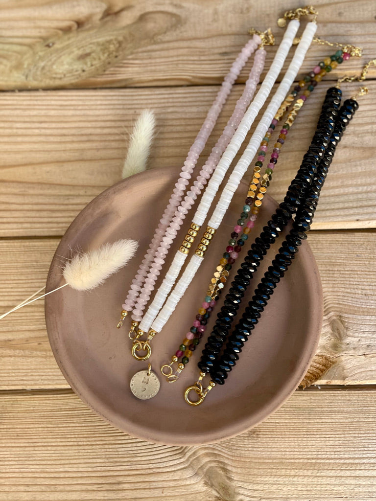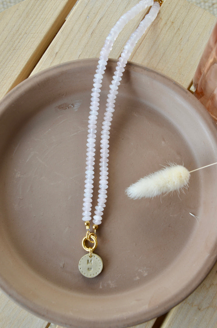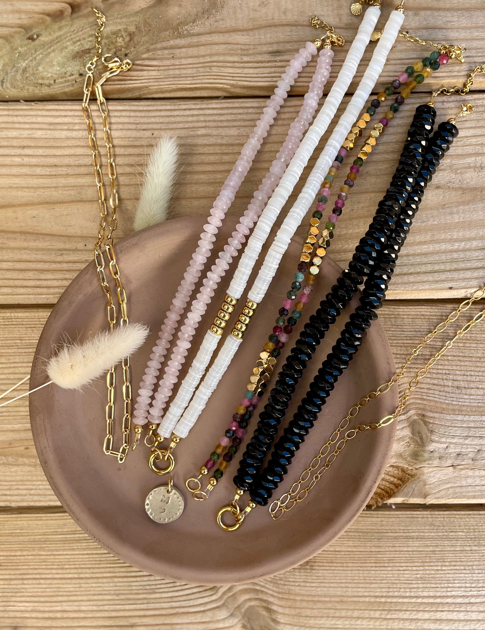 Assemblez votre pendentif en combinant un médaillon céramique avec la chaîne ou le brin de pierres naturelles de votre choix.