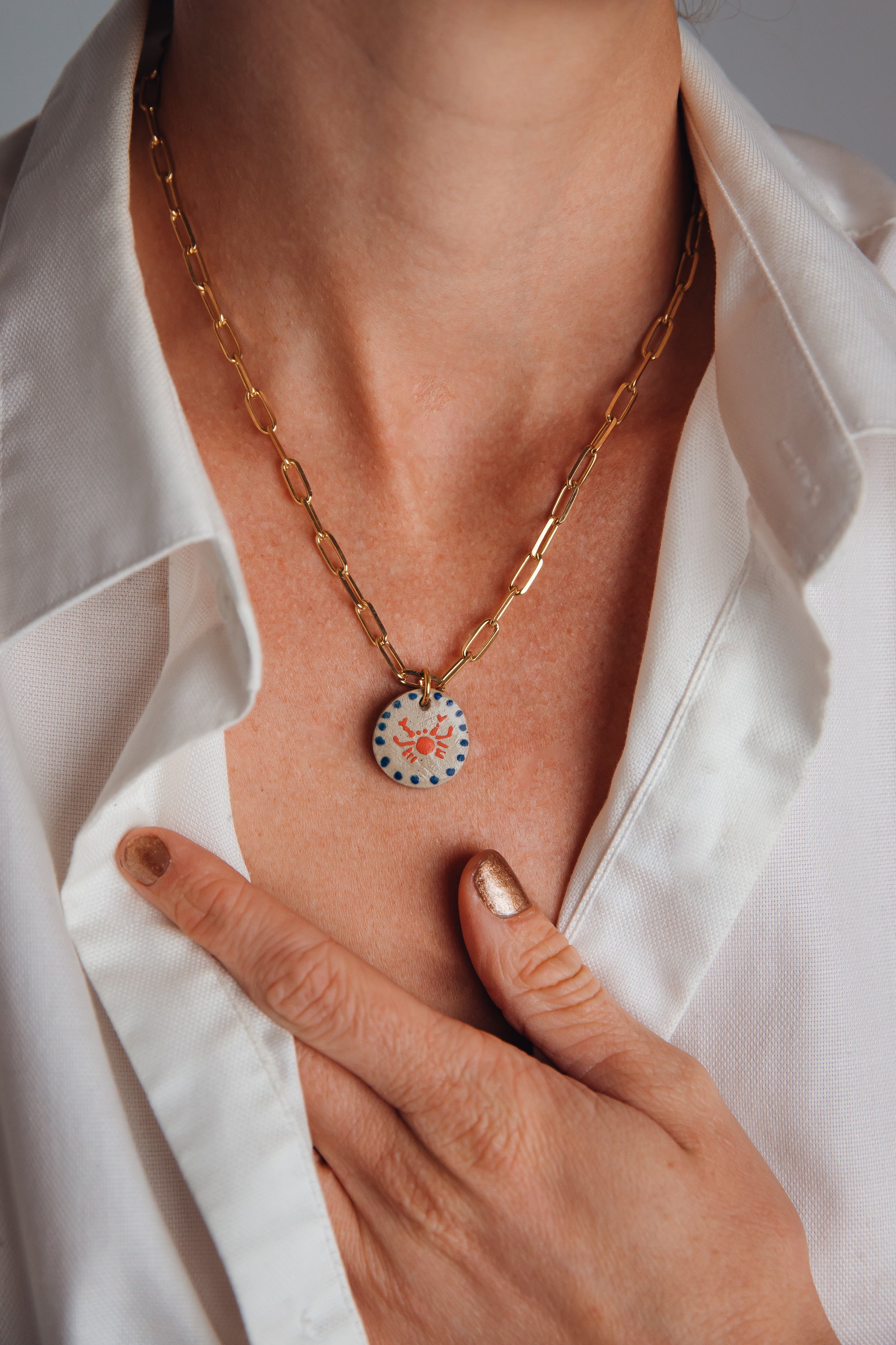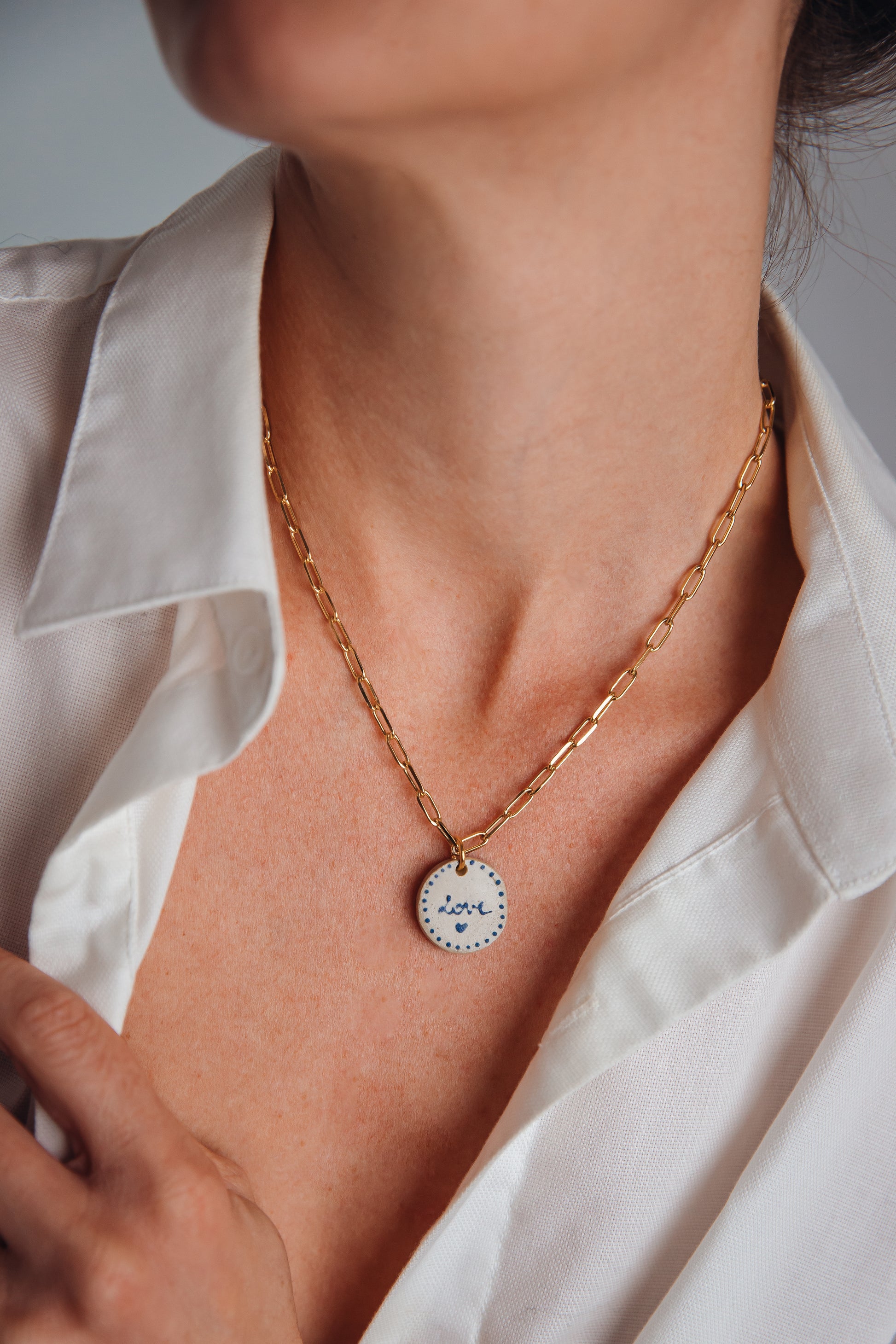 Assemblez votre pendentif en combinant un médaillon céramique avec la chaîne ou la rangée de pierres naturelles de votre choix.
